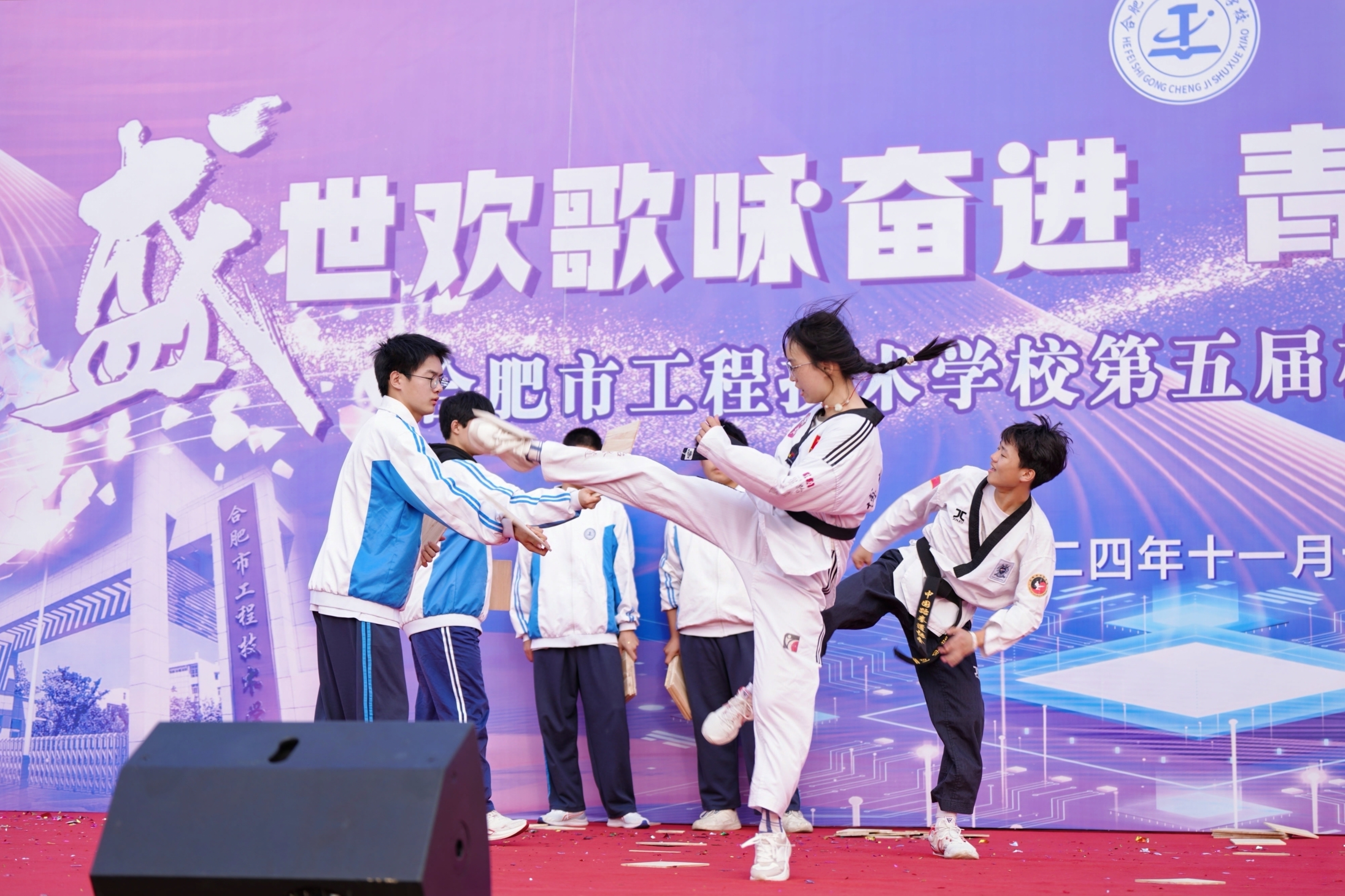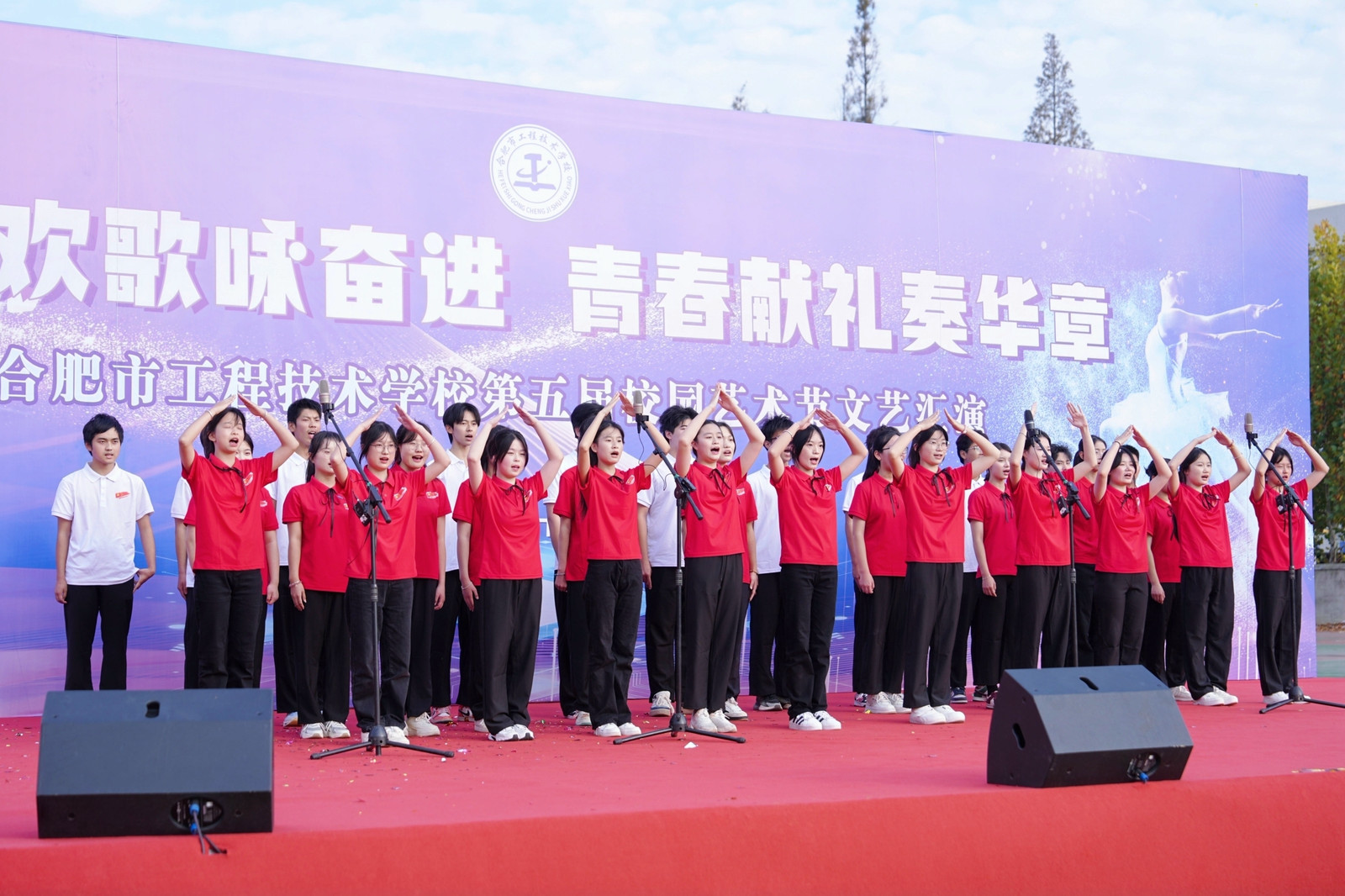 為全面落實立德樹人根本任務(wù),充分發(fā)揮文藝活動在提高學(xué)生人文素養(yǎng)方面的獨特作用,以美育人,以文化人,展現(xiàn)我校學(xué)子的家國情懷和青春風(fēng)采,營造文明高雅、奮發(fā)向上的校園文化氛圍。11月13日下午,合肥市工程技術(shù)學(xué)校隆重舉辦第五屆校園藝術(shù)節(jié)文藝匯演,本屆校園藝術(shù)節(jié)主題為“盛世歡歌詠奮進,青春獻禮奏華章”。全校師生齊聚運動場共饗藝術(shù)盛會,蒞臨本次活動現(xiàn)場的領(lǐng)導(dǎo)有巢湖市第一中學(xué)校長劉德海,巢湖市第二中學(xué)校長何學(xué)寶,巢湖市第四中學(xué)黨委書記張志華,合肥市工程技術(shù)學(xué)校黨委書記王成滿,合肥市工程技術(shù)學(xué)校校長潘明,以及合肥市工程技術(shù)學(xué)校各處室負責(zé)人。