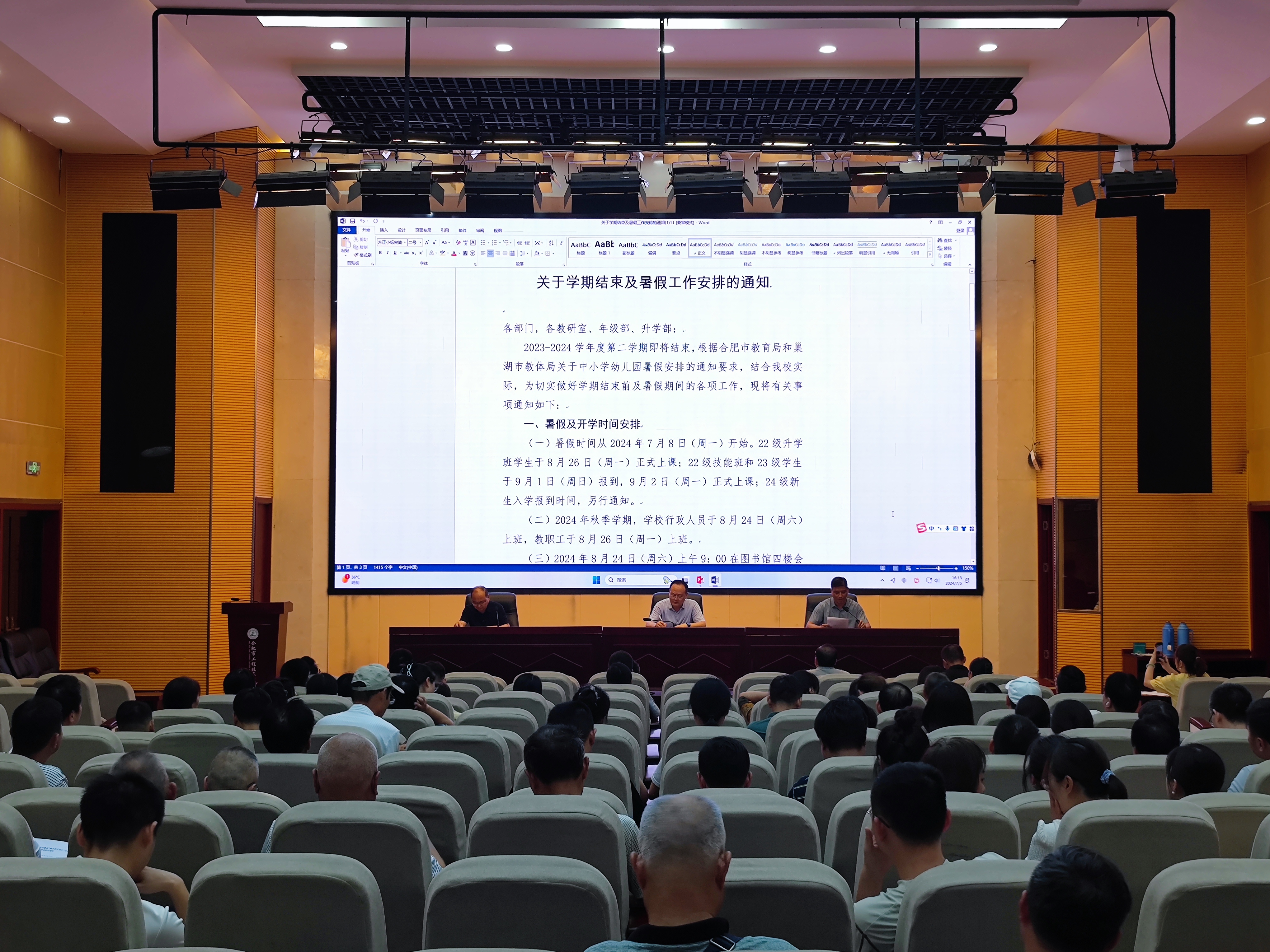 為全面總結(jié)本學(xué)期工作中的經(jīng)驗(yàn)和亮點(diǎn),明確下一步的工作思路,7月5日,我校召開2023-2024學(xué)年度第二學(xué)期期末工作會(huì)議。校黨委書記王成滿,校黨委副書記、校長潘明出席會(huì)議并發(fā)表講話。會(huì)議由校黨委副書記、副校長肖鋒主持,全體教職工參會(huì)。