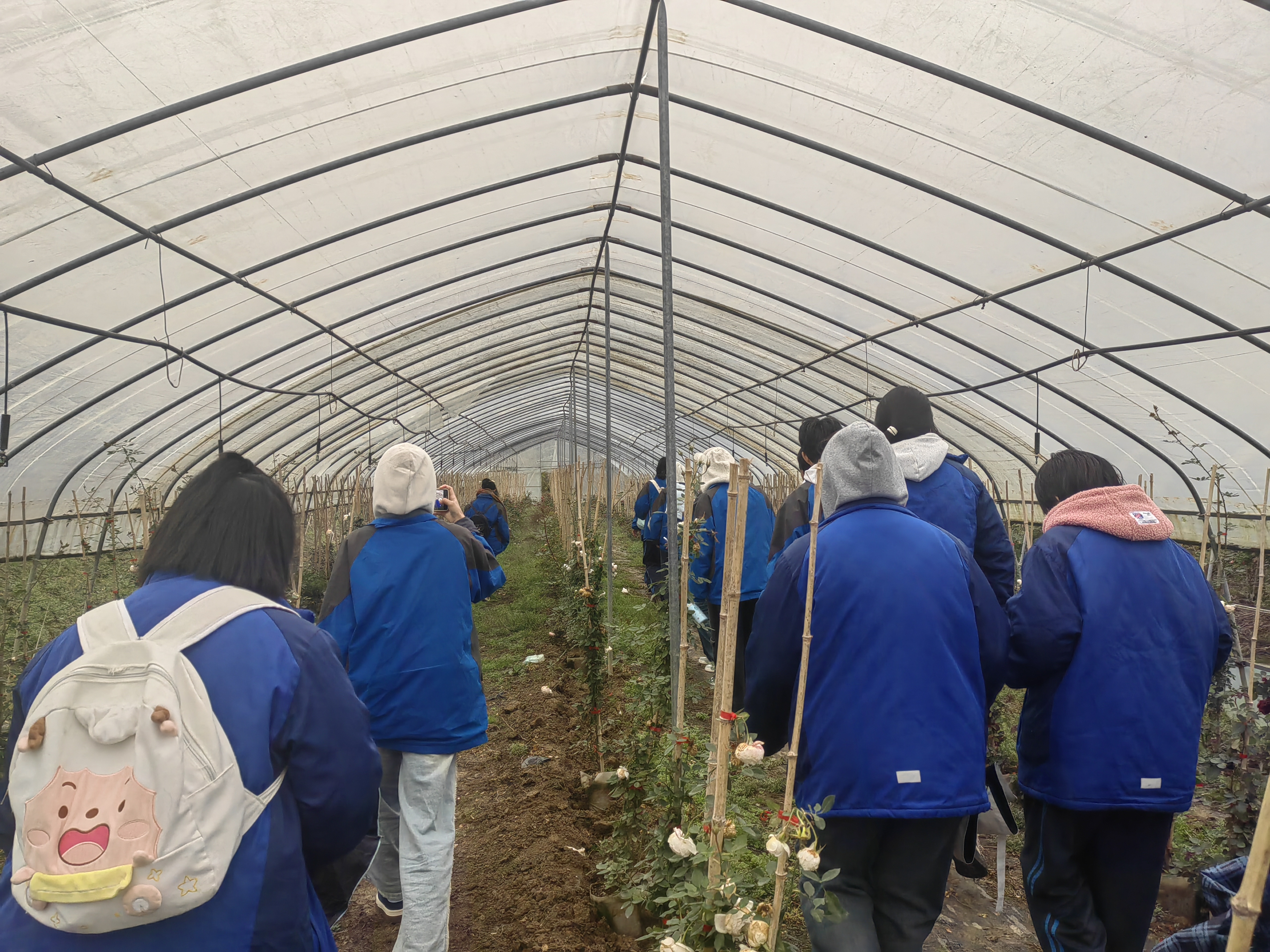 首先,她帶著學(xué)弟學(xué)妹們參觀了花卉示范基地,給大家介紹現(xiàn)在基地的情況,途中何孝霞父親的現(xiàn)場直播引起了電商專業(yè)學(xué)生濃厚的興趣,學(xué)生們也紛紛參與其中。毛毛細(xì)雨絲毫沒有減弱同學(xué)們激動(dòng)的心情,她們一邊穿梭在開滿鮮花的苗圃中,一邊聆聽著何孝霞對(duì)月季種植從選枝到土壤改良、水肥管理與病蟲害防治技術(shù)上的介紹,大家一方面感受到了創(chuàng)業(yè)成果帶來的喜悅,一方面也深深體會(huì)到創(chuàng)業(yè)的不易。